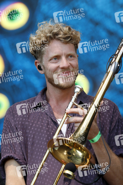 Max von Einem von der Band Bukahara live im Kulturgarten in der Bonner Rheinaue. Das Bonn Live Kulturgarten Open Air Festival 2020 ist Europas erstes Open Air Musik Festival unter Corona-Auflagen wegen der Covid-19 Pandemie. Bonn, 21.07.2020
