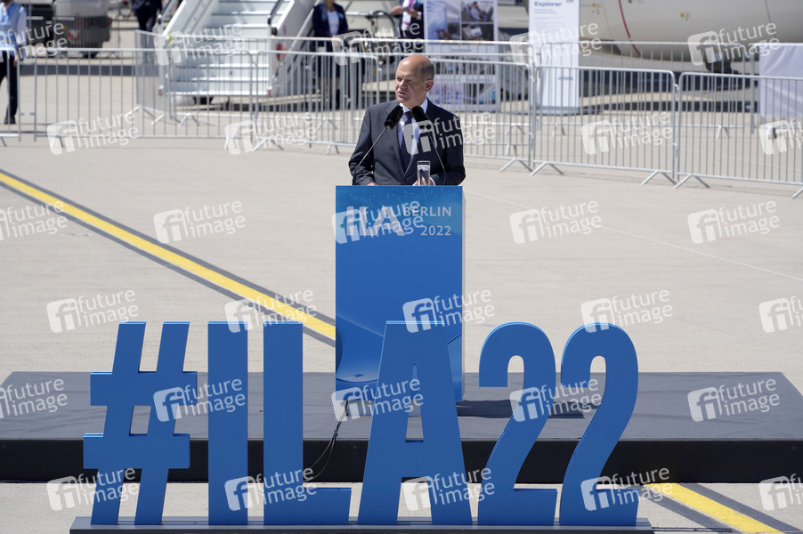 Olaf Scholz bei der ILA-Eröffnung mit anschließendem Rundgang auf dem ILA-Gelände am Flughafen BER Berlin-Brandenburg. Berlin, 22.06.2022