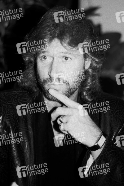 Barry Gibb bei einem Pressetermin. London, 10.07.1984