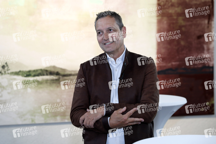 Dieter Nuhr bei der Präsentation der Wanderausstellung 'Woanders ist überall' mit Gemälden über die Geschichte und Kultur des Ruhrgebiets von Dieter Nuhr in der Kreuzkirche. Essen, 28.05.2024