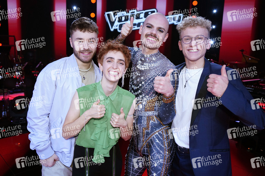 Die Finalisten Julian Pförtner, Anny Ogrezeanu, Basti Schmidt und Tammo Förster im Halbfinale der 12. Staffel der Castingshow 'The Voice of Germany' 2022 im Studio Berlin Adlershof. Berlin, 28.10.2022