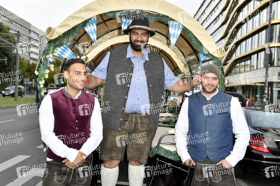 Timur Ülker, Faisal Kawusi und Patrick Heinrich beim Fassanstich bei der 9. Hofbräu Berlin Wiesn im Hofbräu Wirtshaus Berlin. Berlin, 19.09.2020