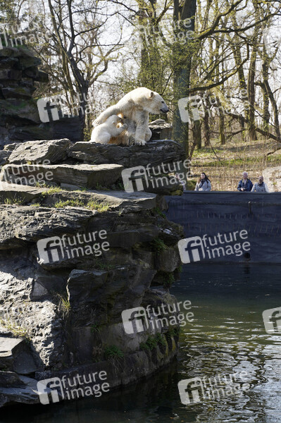 Eisbärin Hertha und Mutter Tonja bei ihrem ersten Ausflug nach der Namensgebung im Tierpark Berlin. Berlin, 02.04.2019