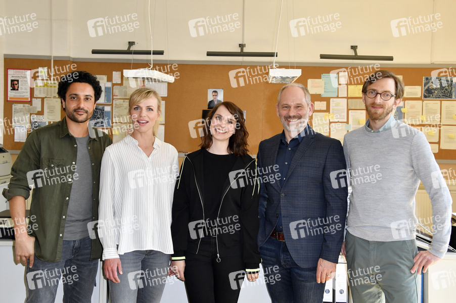 Omar El-Saeidi, Katrin Jaehne, Caroline Erikson, Michael Lott und Hendrik von Bültzingslöwen beim Fototermin am Set der 2. Staffel der ZDF Serie 'Soko Potsdam' im Polizeipräsidium. Potsdam, 09.04.2019
