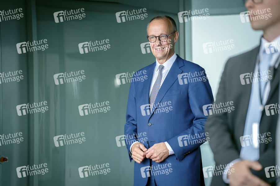Friedrich Merz beim Empfang des Präsidenten von Rumänien zu einem gemeinsamen Gespräch mit anschließendem Pressestatement im Bundeskanzleramt. Berlin, 18.07.2025