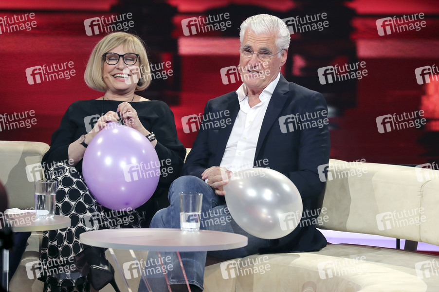 Mary Roos und Sky du Mont bei der Aufzeichnung der ARD-Unterhaltungsshow 'Verstehen Sie Spass?' in den Bavaria Studios. Geiselgasteig bei München, 03.04.2019