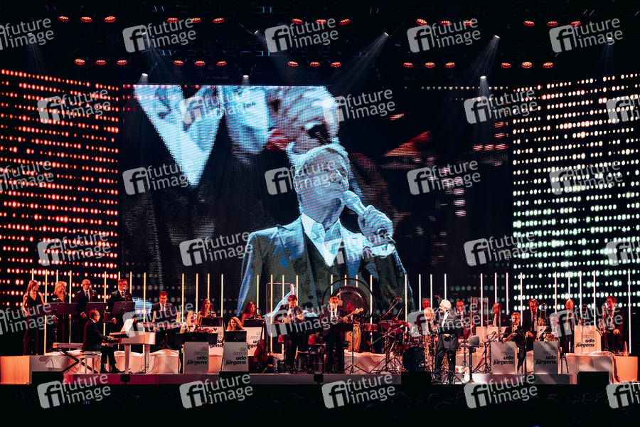 Das Orchester Pepe Lienhard bei der Live-Show 'Da Capo Udo Jürgens' in der Messehalle. Erfurt, 29.04.2025