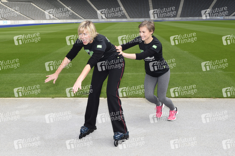 Gesine Cukrowski und Alina Levshin beim Fototermin zur sportichen '#WocheChallenge' im Olympiastation Berlin. Unter dem Motto 'Wir können was bewegen!' ruft die Welthungerhilfe zu dieser Challenge auf und bittet um Spenden für eine Welt ohne Hunger. Berlin, 09.10.2020