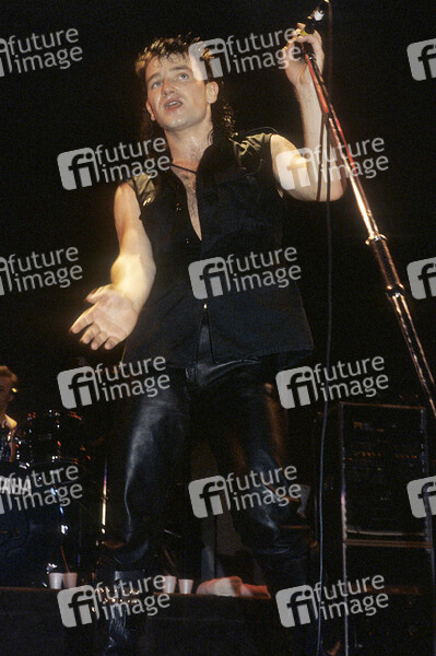 Bono von U2 live bei einem Konzert der 'The Unforgettable Fire'-Tour in der Wembley Arena. London, 14.11.1984