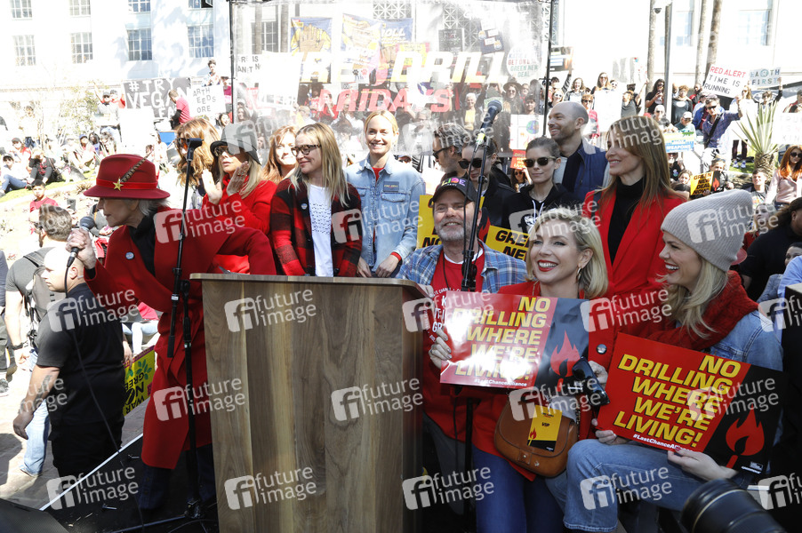 Jane Fonda, Rosanna Arquette, Bonnie Wright, Piper Perabo, Amber Valletta, Joaquin Phoenix, Rainn Wison, Rooney Mara, Kate Mara, June Diane Raphael, Saffron Burrows und Brooklyn Decker bei der Fire Drill Fridays Kundgebung gegen den Klimanotfall vor dem Rathaus. Los Angeles, 07.02.2020