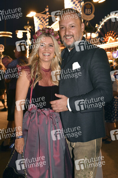 Jennifer Knäble mit Ehemann Felix Moese beim Almauftrieb in der Käfer Wiesn Schänke auf dem 190. Oktoberfest 2025 auf der Theresienwiese. München, 22.09.2025