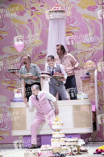 James Kryshak, Günter Papendell, Ivan Tursic und Jens Larsen bei der Fotoprobe zur Oper 'Falstaff' von Giuseppe Verdi in der Komischen Oper. Berlin, 27.04.2022