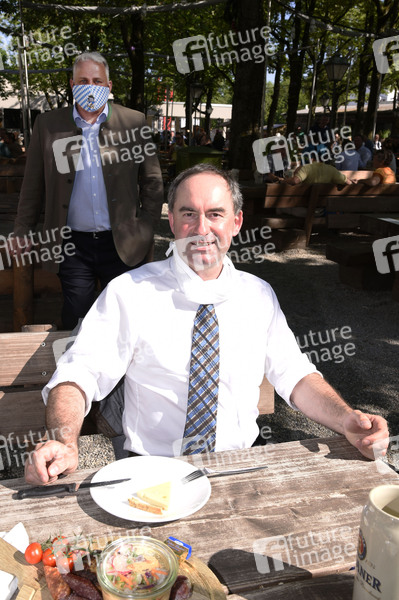 Christian Schottenhamel und Hubert Aiwanger im Biergarten Paulaner am Nockherberg nach Corona-Maßnahmen-Lockerungen. München, 18.05.2020