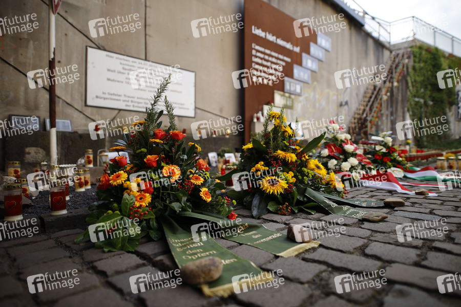 Denkmal, Blumen, Kränze, Lichter, Kerzen, Grablichter, Kreuze, Tunnel, Erinnerung, Opfer, Loveparade, Katastrophe, Unglück, Panik, Massenpanik, Todesopfer, Loveparade 2010, Duisburg, Tunnel, Treppe, Gedenkstätte, 10 Jahre Loveparade-Katastrophe, Unglück bei der Loveparade 2010