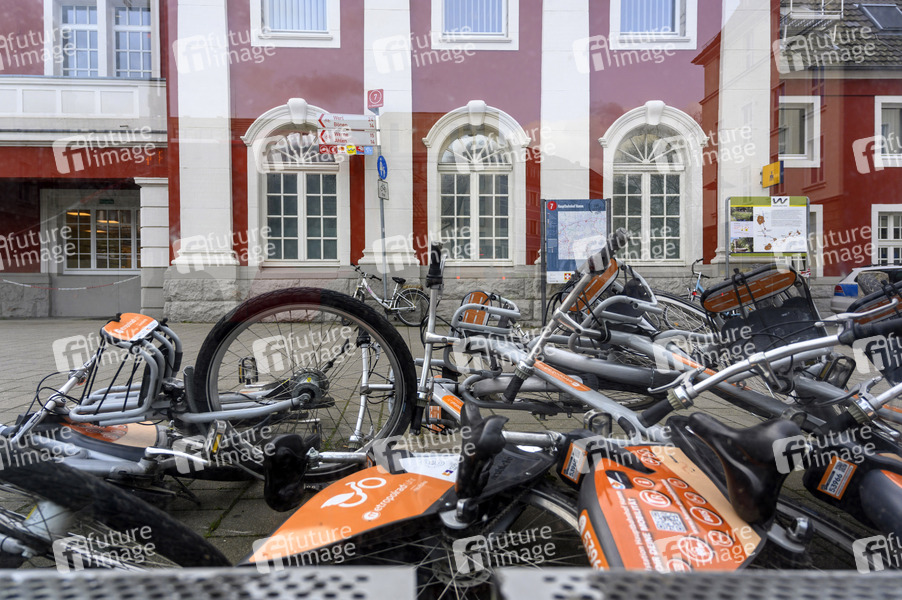 Am Hauptbahnhof Hamm werden Mietfahrräder des Anbieters metropolradruhr von Sturmtief Antonia umgestoßen. (Themenbild, Symbolbild) Hamm, 20.02.2022