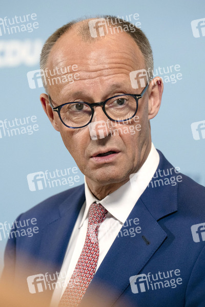 Friedrich Merz beim Pressestatement zur Fraktionssitzung der CDU/CSU-Bundestagsfraktion im Reichstagsgebäude. Berlin, 05.05.2025