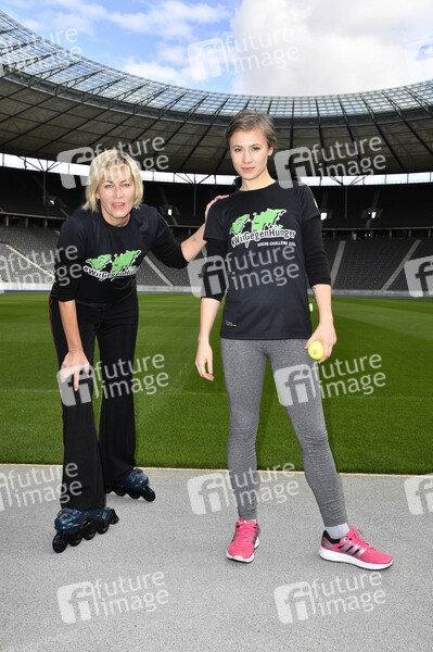 Gesine Cukrowski und Alina Levshin beim Fototermin zur sportichen '#WocheChallenge' im Olympiastation Berlin. Unter dem Motto 'Wir können was bewegen!' ruft die Welthungerhilfe zu dieser Challenge auf und bittet um Spenden für eine Welt ohne Hunger. Berlin, 09.10.2020
