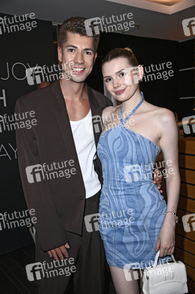 Maximilian Seitz und Eva Bloss beim Charity Promi Swim Event 2025 von Maximilian Seitz zugunsten von 'Kindeswohl-Berlin' im Hotel Pullman Berlin Schweizerhof. Berlin, 24.07.2025