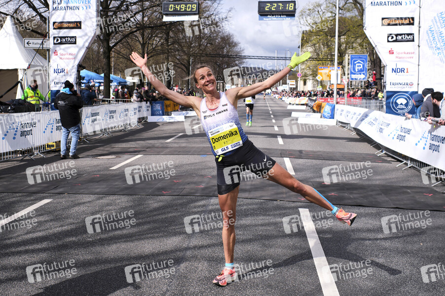 Domenika Mayer (1. Platz) beim 30. HAJ Marathon. Hannover, 03.04.2022