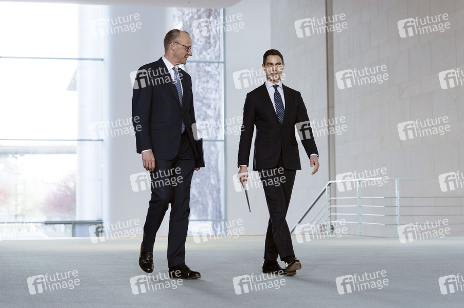 Friedrich Merz und Rob Jetten beim Empfang des Ministerpräsidenten der Niederlande mit militärischen Ehren zu einem gemeinsamen Gespräch mit anschließendem Pressestatement im Bundeskanzleramt. Berlin, 16.03.2026