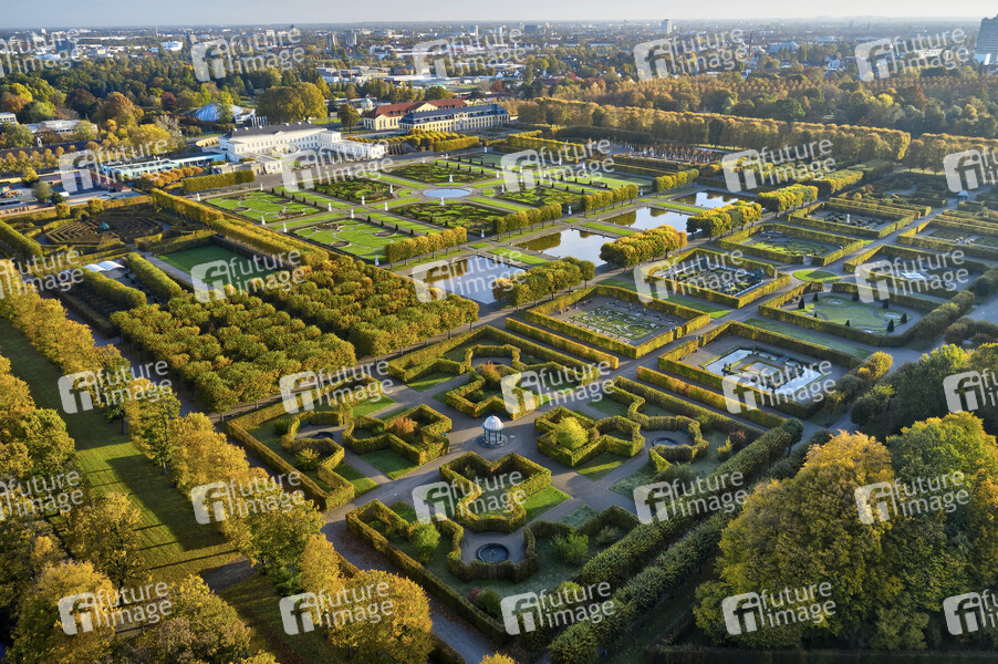 Luftaufnahme, Großer Garten, Barockgarten, Sehenswürdighkeit, Schloss Herrenhausen, Sightseeing, Tourismus, Veranstaltungsort, Berggarten, Georgengarten, Welfengarten, Nordstadt, uftaufnahme, Luftbild, Drohne, Drohnenaufnahme, goldener Oktober, Wetter, Sonne, sonnig, Herbstblätter, buntes Herbstlaub, Blätter, goldener Herbst, Herbstfarben, herbstlich, Herbstsonne, Herbstspaziergang, Herbststimmung, Herbsttag, Herbstwetter, herstblich