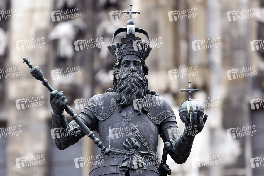 Karl der Große, Karol, Karolinger, Mittelalter, Frühmittelalter, Geschichte, Deutsche Geschichte, Historie, Kaiser, König, Statue, Aachen, Brunnen, Karlsbrunnen, Carolus Magnus, Karolus Magnus, Charlemagne, Fränkisches Reich, Kaiserwürde, Franken, Frankenreich, Herrscher, Feldzüge, Macht, Reich, Europäische Geschichte, Herrschaft, Regent, römisch-deutscher Kaiser, französischer König, Karl I., Karl der Erste, Symbolbild, Symbolfoto