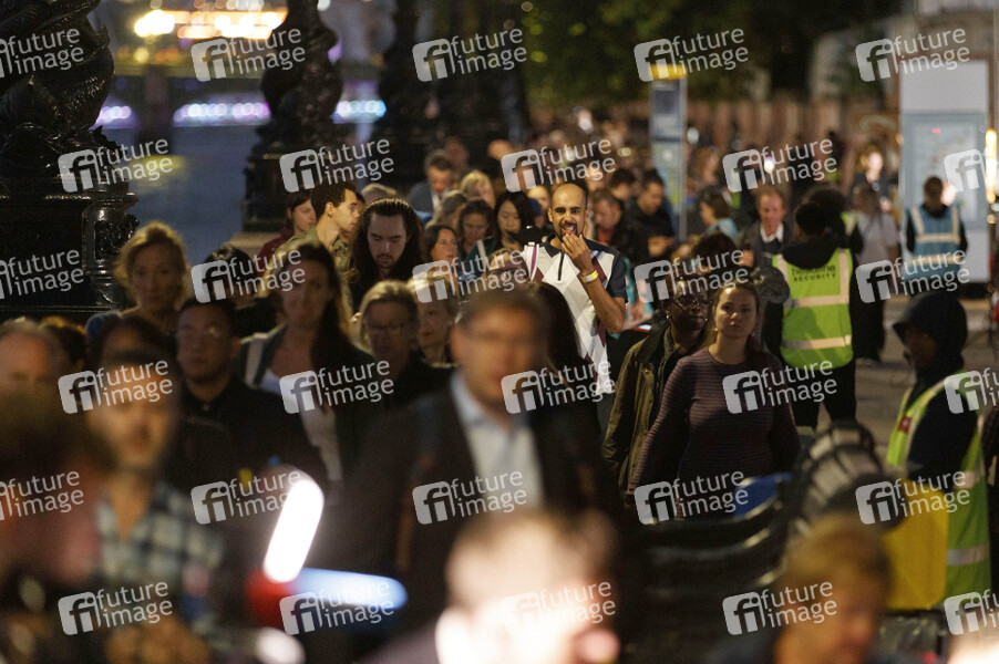 Schlangestehen, warten, Trauer, Anteilnahme, Tod von Königin Elisabeth II., Kondolenz, Kondolation, Beileidsbekundung, Monarchin, Abschied, Operation London Bridge
