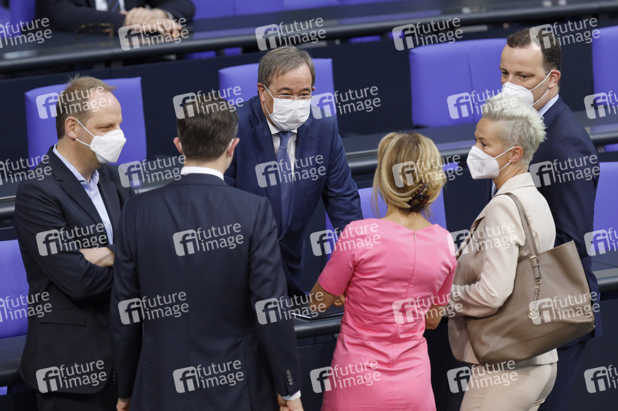 Thomas Heilmann, Paul Ziemiak, Armin Laschet, Michaela Noll, Silvia Breher und Jens Spahn in der 236. Sitzung des Deutschen Bundestages im Reichstagsgebäude. Berlin, 24.06.2021