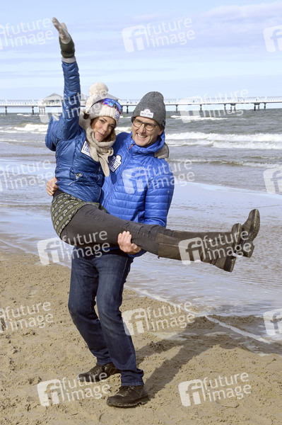Gerit Kling mit Ehemann Wolfram Becker beim Baltic Lights 2023 Charity-Hunderennen zu Gunsten der Welthungerhilfe zwischen der Seebrücke Ahlbeck und der Seebrücke Heringsdorf. Heringsdorf, 04.03.2023