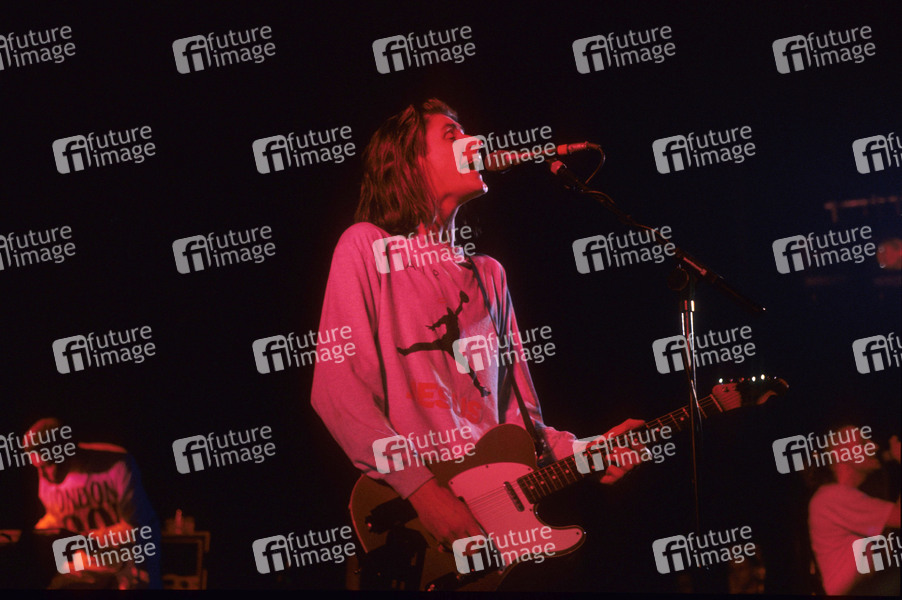 Iain Baker, Mike Edwards und Jerry De Borg von Jesus Jones live im Town & Country Club. London, 27.02.1991