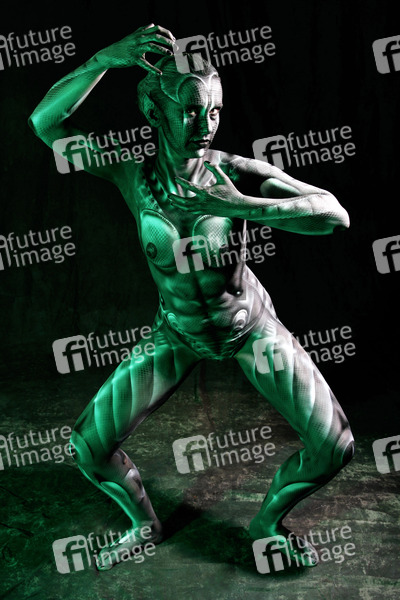 Bodypainting, Erotik, Frau, nackt, drinnen, weiblich, Monster, Außerirdische, Alien, Echse, Körperkunst, Kunst, Malerei, monochrom, erotic, woman, nude, indoor, female, monochrome, lizard, body art, body painting
