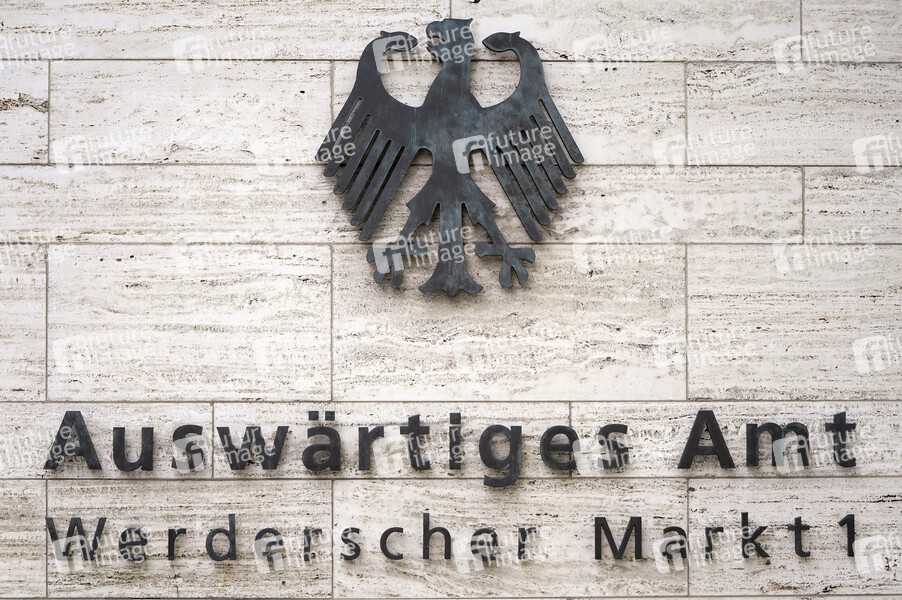 Logo des Aswärtigen Amts am Außenministerium am Werderschen Markt. Berlin, 16.06.2019