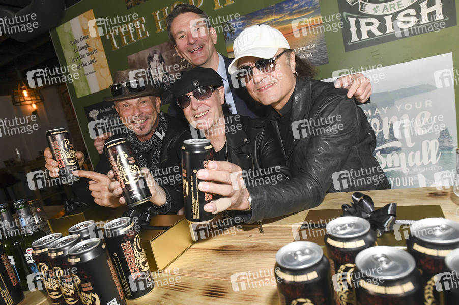 Rudolf Schenker, Klaus Meine, Mike Gärtner und Matthias Jabs bei der Präsentation des neuen Scorpions Bier in Kooperation mit Gilde im Hop House. Hannover, 09.04.2025