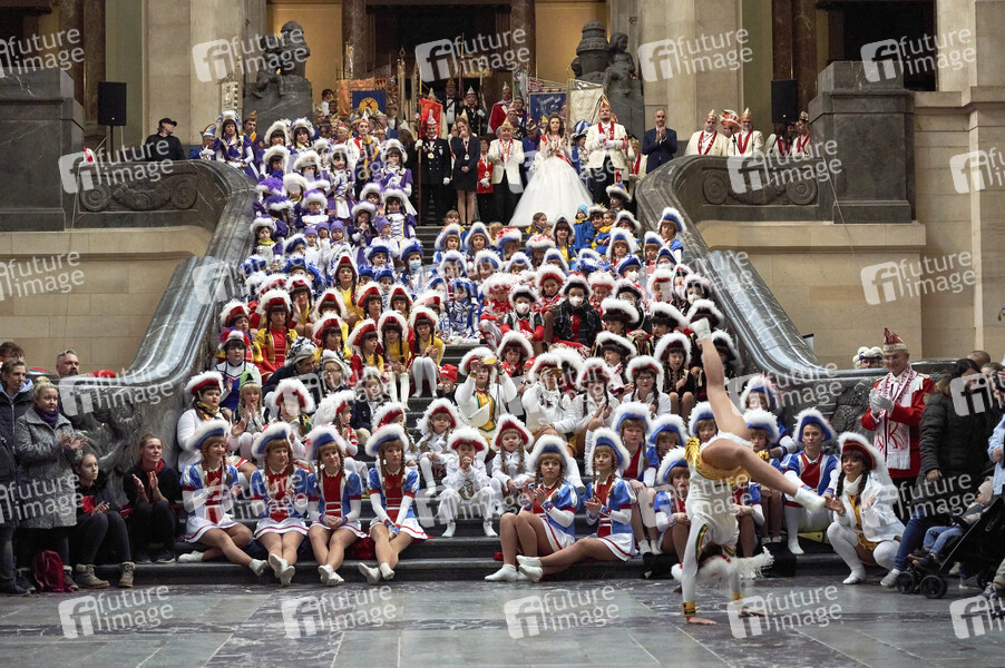 Stürmung des Neuen Rathauses durch die Hannoveraner Karnevalsvereine und der Proklamation der Prinzenpaare 2021 mit Übergabe des Stadtschlüssels. Hannover, 13.11.2021