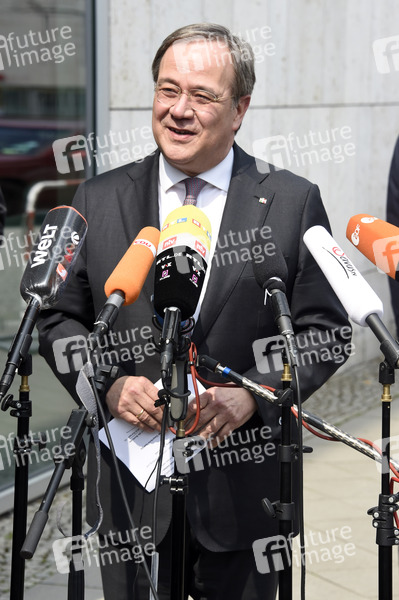 Armin Laschet bei einem Pressestatement zur Kanzlerkandidatur von Annalena Baerbock vor dem Konrad-Adenauer-Haus. Berlin, 19.04.2021