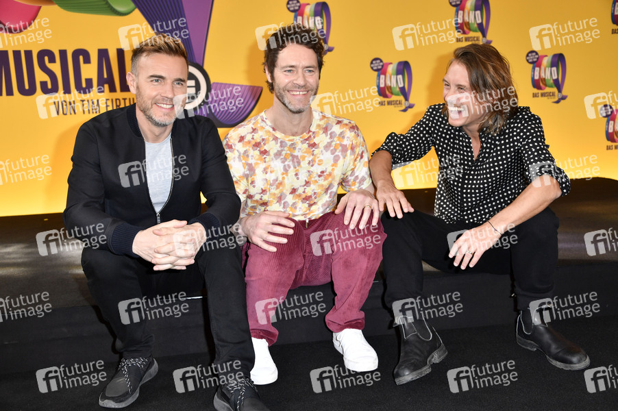 Gary Barlow, Howard Donald und Mark Owen von Take That beim Photocall zu 'The Band - Das Musical' im Stage Theater des Westens. Berlin, 01.04.2019