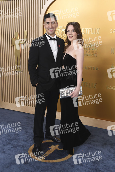 Kenichiro Thomson mit Begleitung bei der Verleihung der 31. Screen Actors Guild Awards 2025 im Shrine Auditorium and Expo Hall. Los Angeles, 23.02.2025
