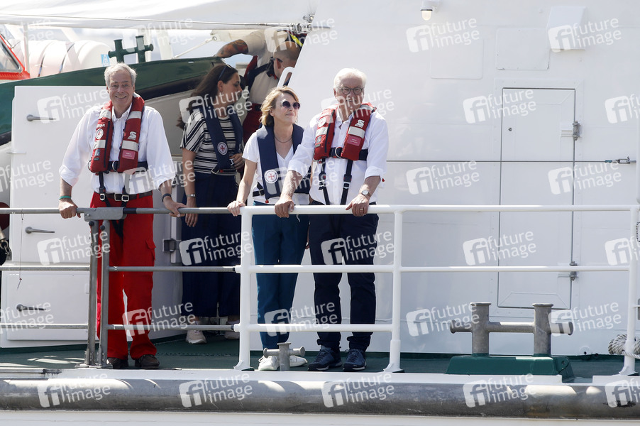 Frank-Walter Steinmeier mit Ehefrau Elke Büdenbender bei der Eröffnung der Sail Bremerhaven 2025 mit Begrüßungszeremoniell und Segeltörn auf der 'Gorch Fock', Besichtigung des Seenotrettungskreuzers 'Hermann Rudolf Meyer' und Empfang auf der Fregatte 'Bayern'. Bremerhaven, 13.08.2025