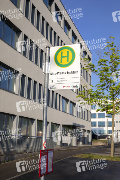Haltestelle Max-Planck-Institute vor dem alten Gebäude des Tübinger Pharmaunternehmens CureVac AG. Tübingen, 19.04.2020
