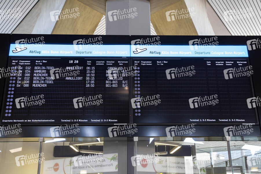 Anzeigetafel - Nahezu vollständiges Erliegen des Personenflugverkehrs im Zusammenhang mit der Corona-Krise am Flughafen Köln/Bonn. Köln; 07.04.2020