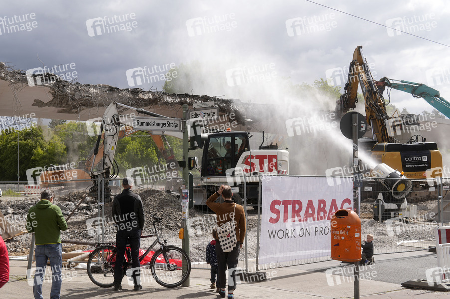 Der Abriss der maroden Brücke an der Wuhlheide (Oberschöneweide) geht zügig voran. Bereits am 2. Tag wird schon ein Teil der Brücke abgerissen. Die kaputte Brücke soll schnellstmöglich entfernt werden mit dem Ziel, die Freigabe der blockieren Straßenbahntrasse und Wiederherstellung des Fuß- und Radverkehrs zwischen Treskowallee und Edisonstraße möglichst bis zum 30. Mai. Berlin, 24.05.2025