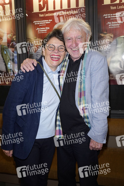 Emil Steinberger mit Ehefrau Niccel Steinberger bei der Premiere des Dokumentarfilms 'Typisch Emil - Vom Loslassen und Neuanfangen' im Kant Kino. Berlin, 16.06.2025