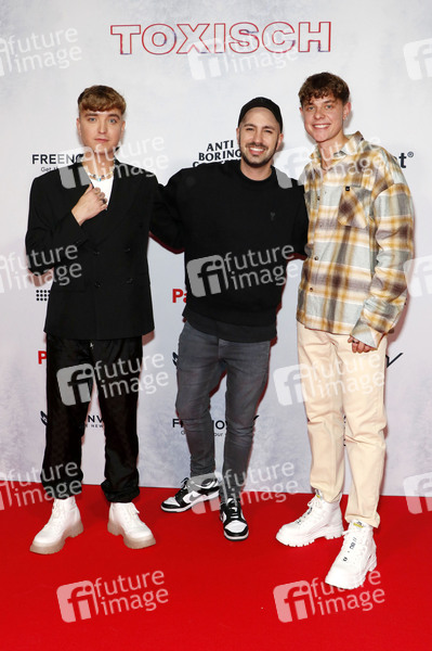 Jonas Wuttke, Dominik Porschen und Jonas Ems bei der Premiere der Serie 'Toxisch' im UCI Luxe Mercedes Platz. Berlin, 04.11.2022