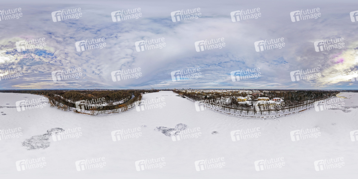Gewässer, Eis, gefroren, zugefroren, Schneetreiben, Winter, gefrierende Nässe, Kälteeinbruch, Schneefall, Schnee, Schneegrenze, Schneematsch, Glätte, glatt, Frost, Wetter, Glättegefahr, Glatteis, Glatteisgefahr, Temperatursturz, Winterdienst, Streusalz, Schneeglätte, Deutscher Wetterdienst, winterlich, kalt, Schnee-Chaos, Luftaufnahme, Luftbild, Drohne, Drohnenaufnahme, Panorama, Themenfoto, Symbolbild, Themenbild Themenfoto, Symbolfoto