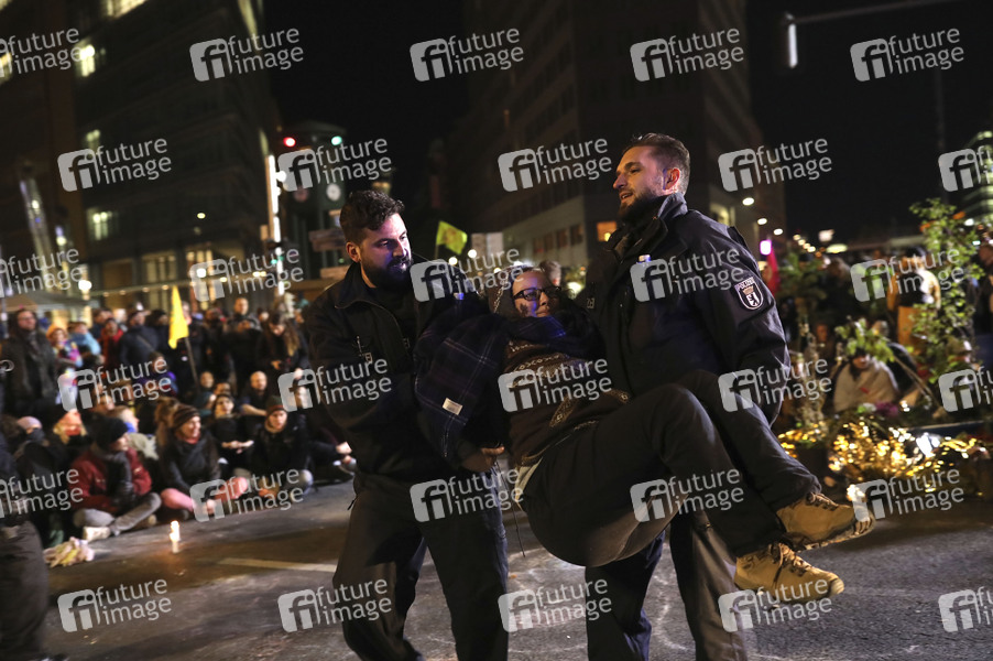 Aktivisten der Klimabewegung 'Extinction Rebellion' blockieren den Potsdamer Platz. Berlin, 07.10.2019