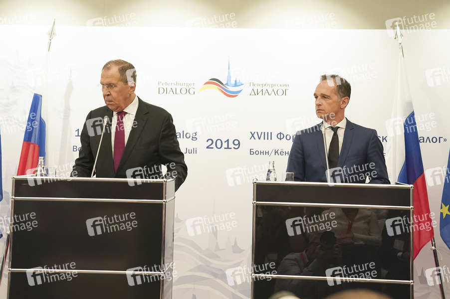 Sergei Wiktorowitsch Lawrow / Sergey Lavrov und Heiko Maas bei einer Pressekonferenz zur Eröffnung vom 18. Petersburger Dialog 2019 im Steigenberger Hotel. Königswinter, 18.07.2019