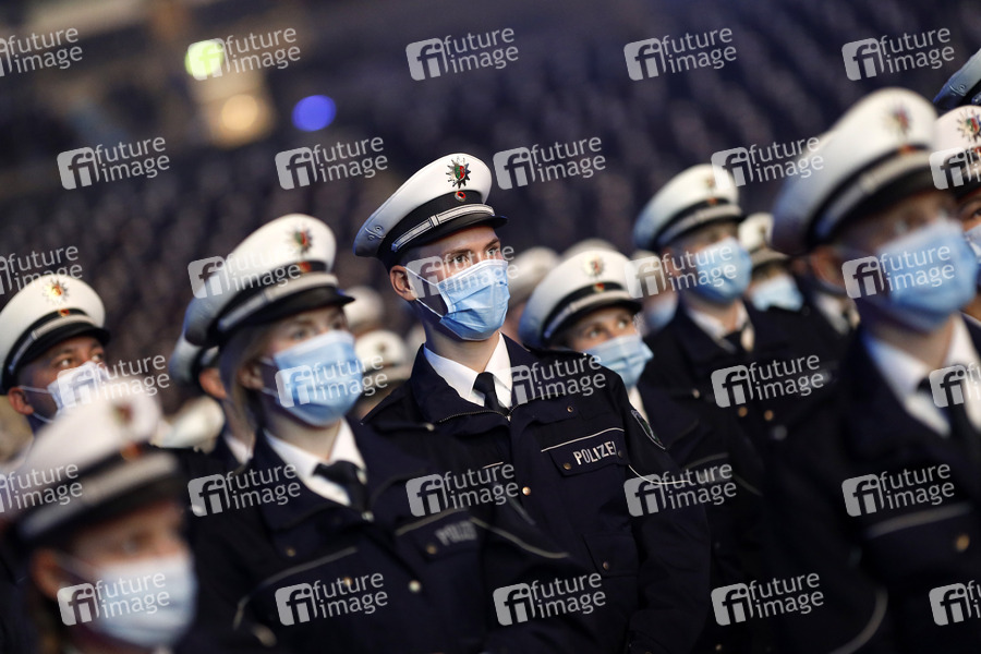 Polizisten bei der Vereidigungsfeier der Polizei NRW in der Lanxess-Arena. Köln, 16.09.2021