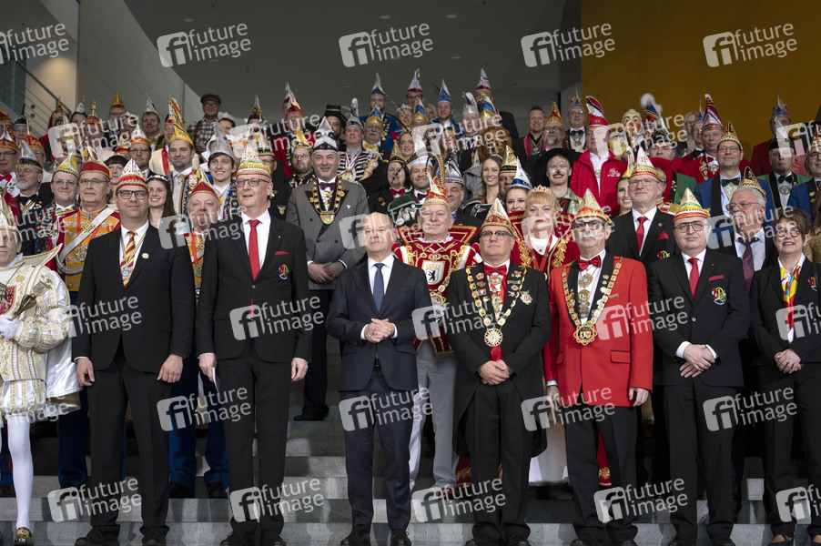 Olaf Scholz und Klaus-Ludwig Fess beim Empfang von Karnevalisten im Bundeskanzleramt. Berlin, 05.02.2025