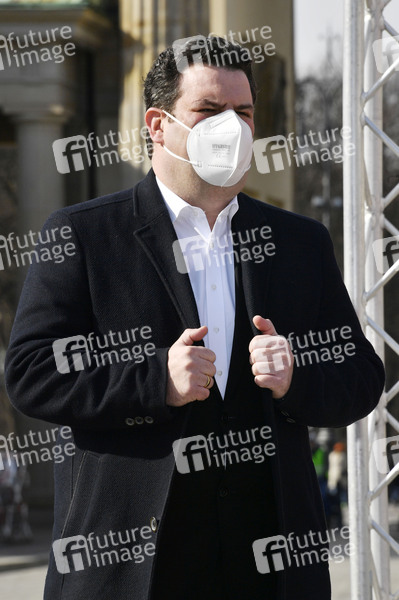 Hubertus Heil bei der DGB-Aktion zum Equal Pay Day vor dem Brandenburger Tor. Berlin, 10.03.2021