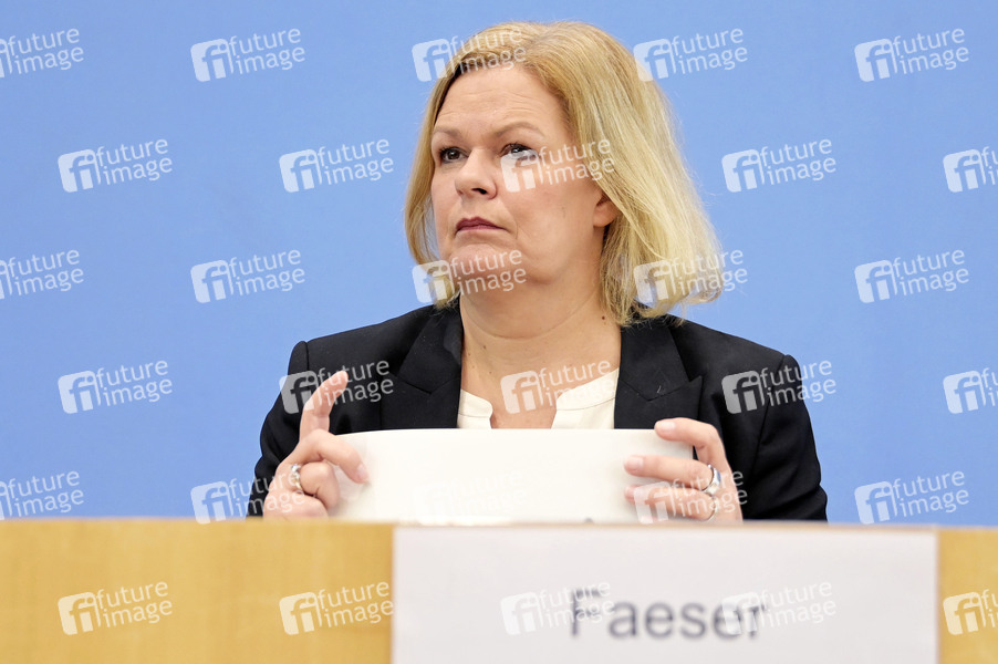Nancy Faeser bei der Bundespressekonferenz Polizeiliche Kriminalstatistik 2023 im Haus der Bundespressekonferenz. Berlin, 09.04.2024